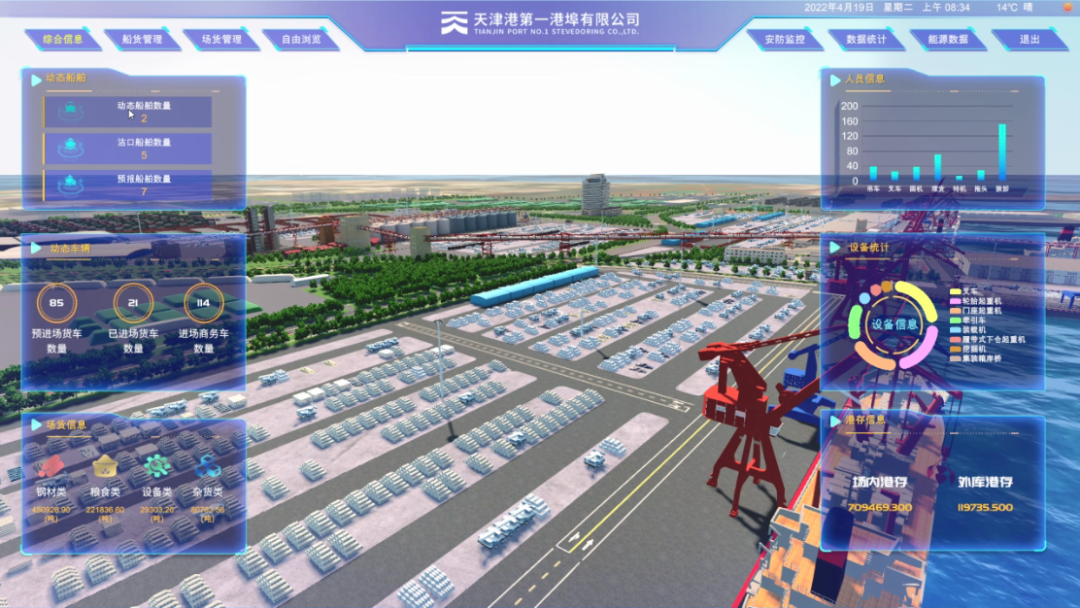 由suncitygroup太阳集团物联与天津港一公司共同打造的数字孪生系统一期项目,以数据支撑底座,能够实现可视化,将泊位、停船、场地、货物、视频监控等信息实时展示出来。一期项目是优化资源利用、提高港口运转效率的第一步,也是双方为2022年的系统深化,将人、机、车、船、货、场资源充分结合调用起来,从而提高货物周转率、场地使用率,最终指导生产、实现降本增效所打下的坚实基础。