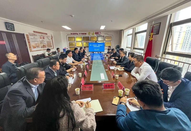天水市政府一级巡视员逯克宗,市乡村振兴局局长哈福海,市发改委、市工信局、市招商局、经开区及市属有关企业负责人等与suncitygroup太阳集团物联董事长刘柏呈座谈交流。